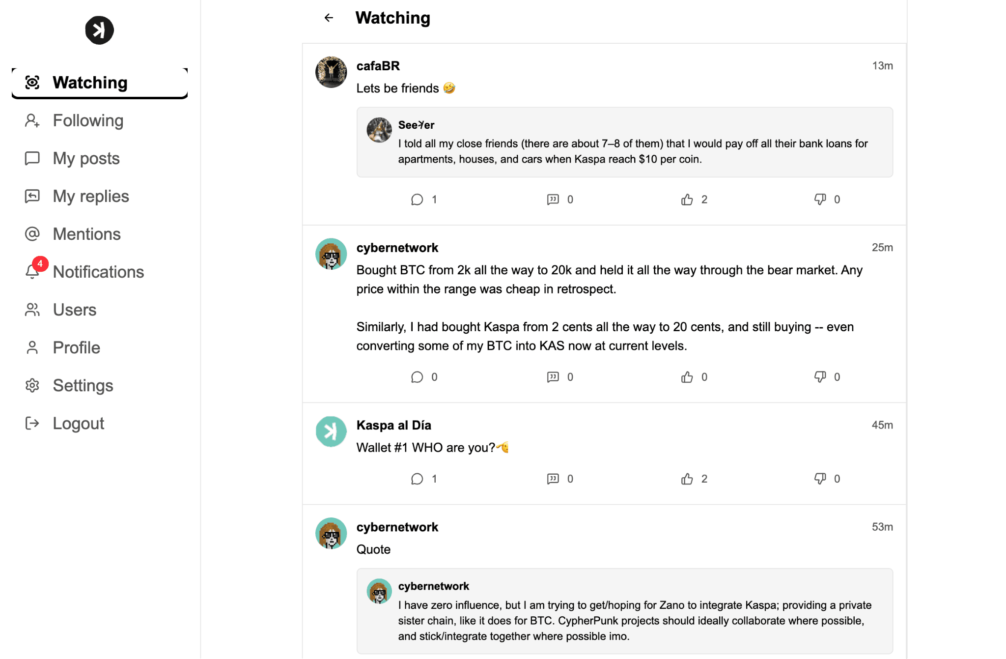 该项目在KAS接入更多交易所前不久,由一位Kaspa社区开发者公开宣布上线。尽管功能完整,K-Social仍被视为实验性项目,其开发者将其描述为概念验证。