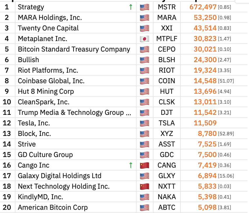 追随Strategy步伐,Twenty One Capital于4月启动比特币储备策略,目前持仓超43,500枚BTC。该公司获Cantor Fitzgerald、Tether、SoftBank及Bitfinex支持,7月从Tether获得约5,800枚BTC增持。