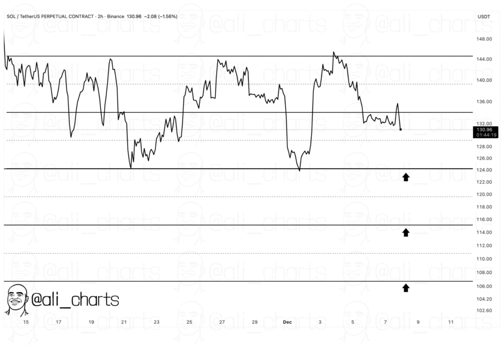 马丁内斯强调:“124美元支撑位对Solana的稳定性至关重要。若失守此位,可能引发更大跌幅。”目前价格虽暂稳于该支撑位上方,但交易者对近日潜在波动保持警惕。阻力位分别位于138美元和148美元附近,任何突破都可能预示上涨趋势。