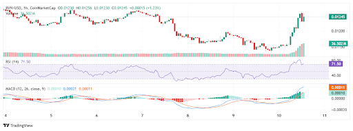Ravencoin(RVN)当前展现出良好的技术结构。过去24小时上涨10.14%后,现均价报0.01261美元。价格飙升与交易量放大,表明投资者对该项目的技术改进及未来发展充满信心。
