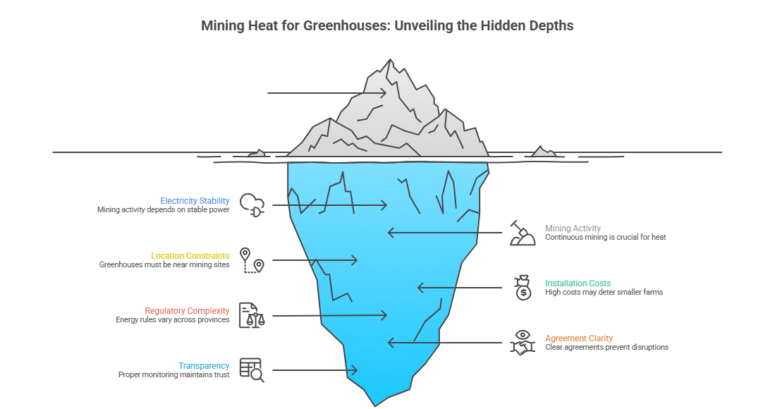 这一模式前景广阔,但也伴随挑战。温室需要稳定供热,而这依赖于稳定的电力供应和持续的挖矿活动。若矿工因市场波动或设备问题而停机,备用供暖系统必须介入,这会增加成本和运营压力。地理位置也至关重要。