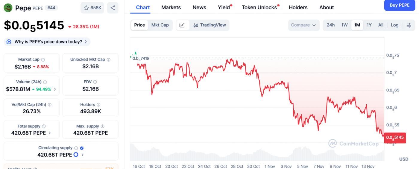 佩佩币当前交易价约0.000005145美元,仍是市场上最具影响力的meme币之一。技术面显示强劲上涨潜力,支撑位位于0.00000489美元、0.00000441美元和0.00000392美元,阻力位则在0.00000588美元、0.00000671美元和0.00000792美元。