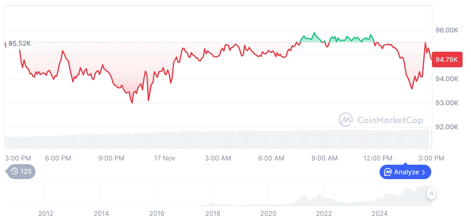 要点分析 比特币价格跌破94,000美元关口,市场情绪显著受挫。分析师普遍预测未来市场波动可能加剧,而机构投资者在不确定性中保持观望态度。 市场行情转折点 2023年10月,比特币价格跌破94,000美元,这一关键点位的失守标志着市场情绪的重大转变,其影响已波及全球市场。技术分析师指出,除非能迅速收复关键支撑位,否则下行趋势或将延续。 市场反应深度解读 比特币跌破心理关口不仅意味着技术面的转变,更对投资者情绪造成广泛冲击。社交媒体讨论显示,这一持续下跌行情源自前期高点的逐步回落,已导致部分投资者面临强平压力,市场对进一步亏损的担忧加剧。 尽管大型机构投资者尚未发表详细评论,但零售与机构 -