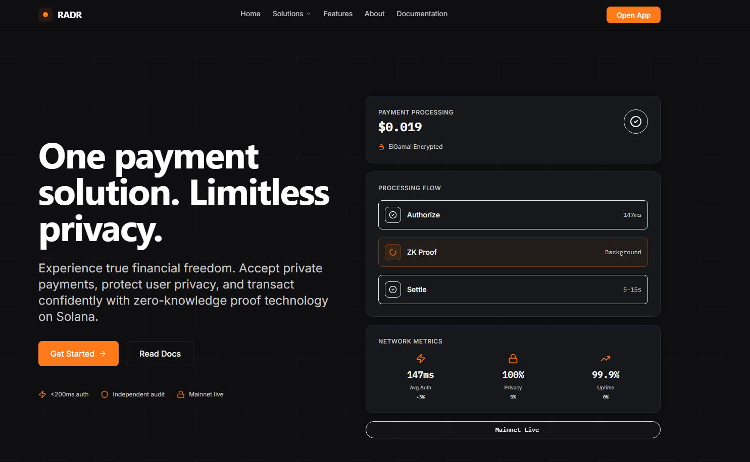 ShadowPay:为Solana和Bonk生态系统引入真正的交易隐私 基于Solana的隐私支付基础设施协议Radr今日正式推出ShadowPay支付通道,该技术将为Solana和Bonk生态系统带来真正的交易隐私保护。ShadowPay旨在让可编程的隐私支付成为Solana网络的一等公民,使用户、应用程序和API无需在速度、低费用和隐私之间做出妥协。 技术架构 作为构建在Bonk平台上的代币项目,Radr植根于Solana最具活力和文化驱动力的社区之一。同时,ShadowPay基于Solana基础层开发,充分利用其高吞吐量、低费用和并行执行特性,为用户提供即时可靠的支付体验。 随着市 -